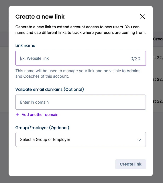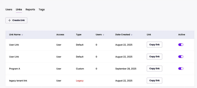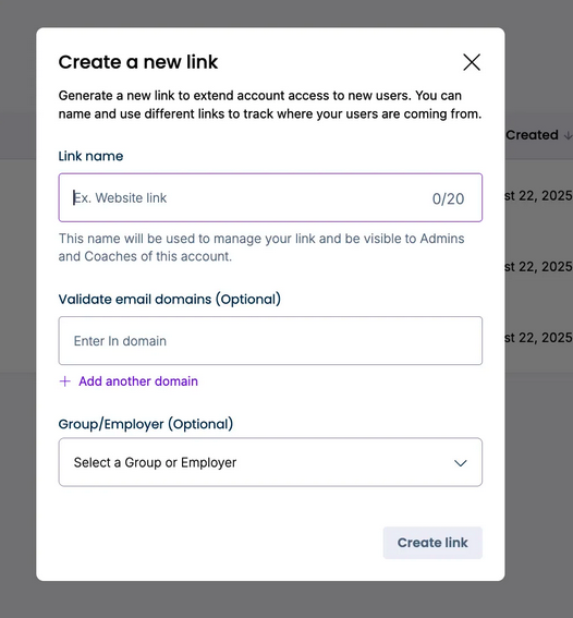 Tracking links are unique URLs you can share with job seekers in order to associate them with a tag and/or group. When a user signs up using your tracking link, they will automatically be associated with that tracking link, making it easier to attribute engagement to your organization or program.